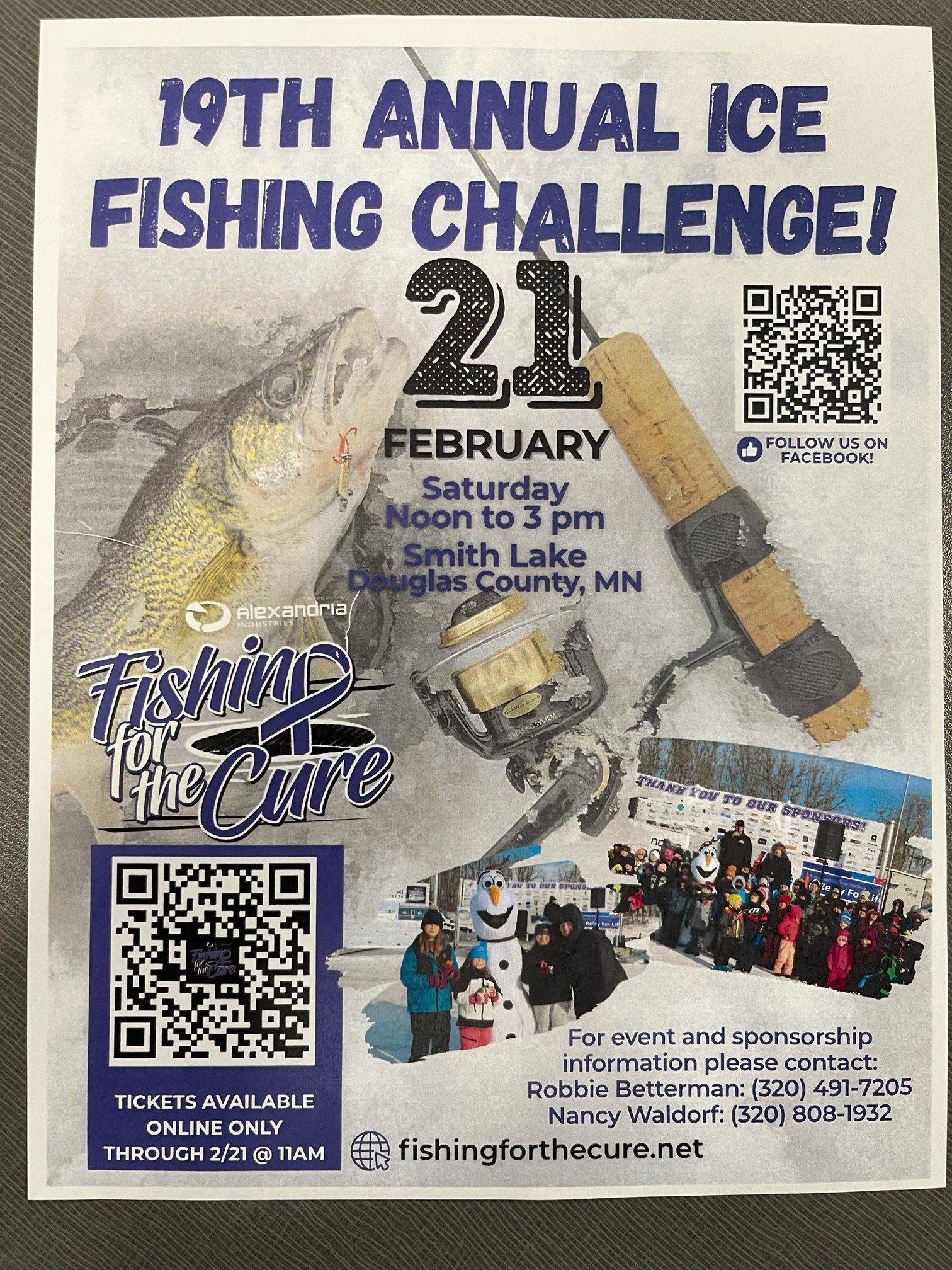 Ice Fishing contest on Smith Lake hosted by Alexandria Industries. 12pm-3pm. All proceeds raised will go to the BestofMNWEST relay for life, American Cancer Society.