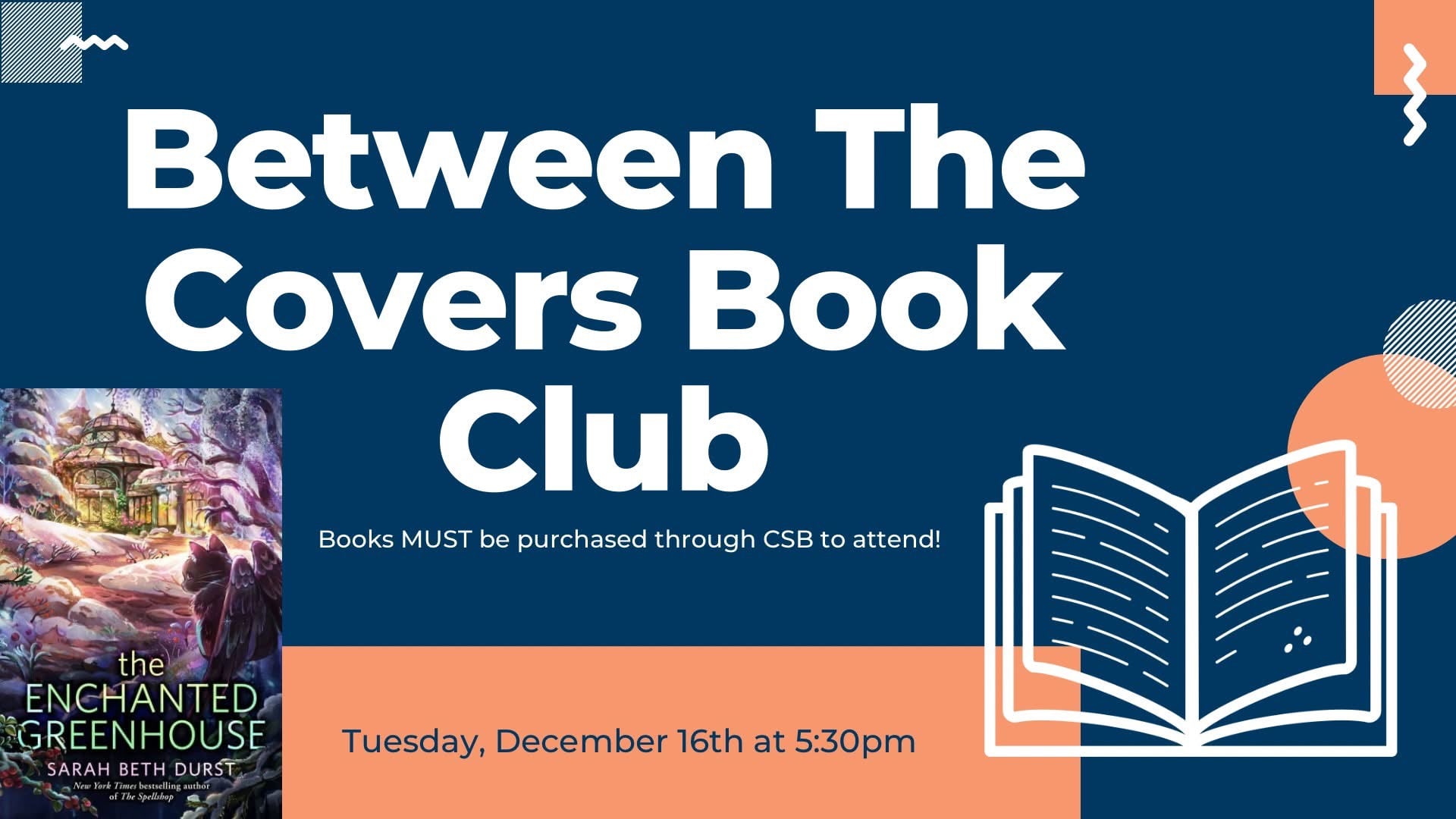 Step into the magic with our Between the Covers Book Club! 🌿✨ We’re reading The Enchanted Greenhouse by Sarah Beth Durst. This is a heartwarming tale of friendship, wonder, and a little everyday enchantment. Join us for cozy conversation and shared discoveries!