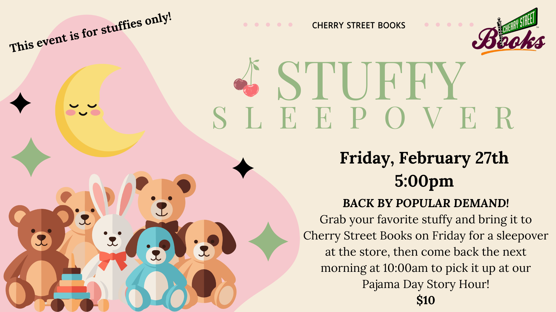 BACK BY POPULAR DEMAND! Grab your favorite stuffy and bring it to Cherry Street Books on Friday, February 27th at 5:00pm for a sleepover at the store, then come back the next morning (Saturday, February 28th) at 10:00am to pick up your stuffy at our Pajama Day Story Hour! The stuffed animals will be having […]