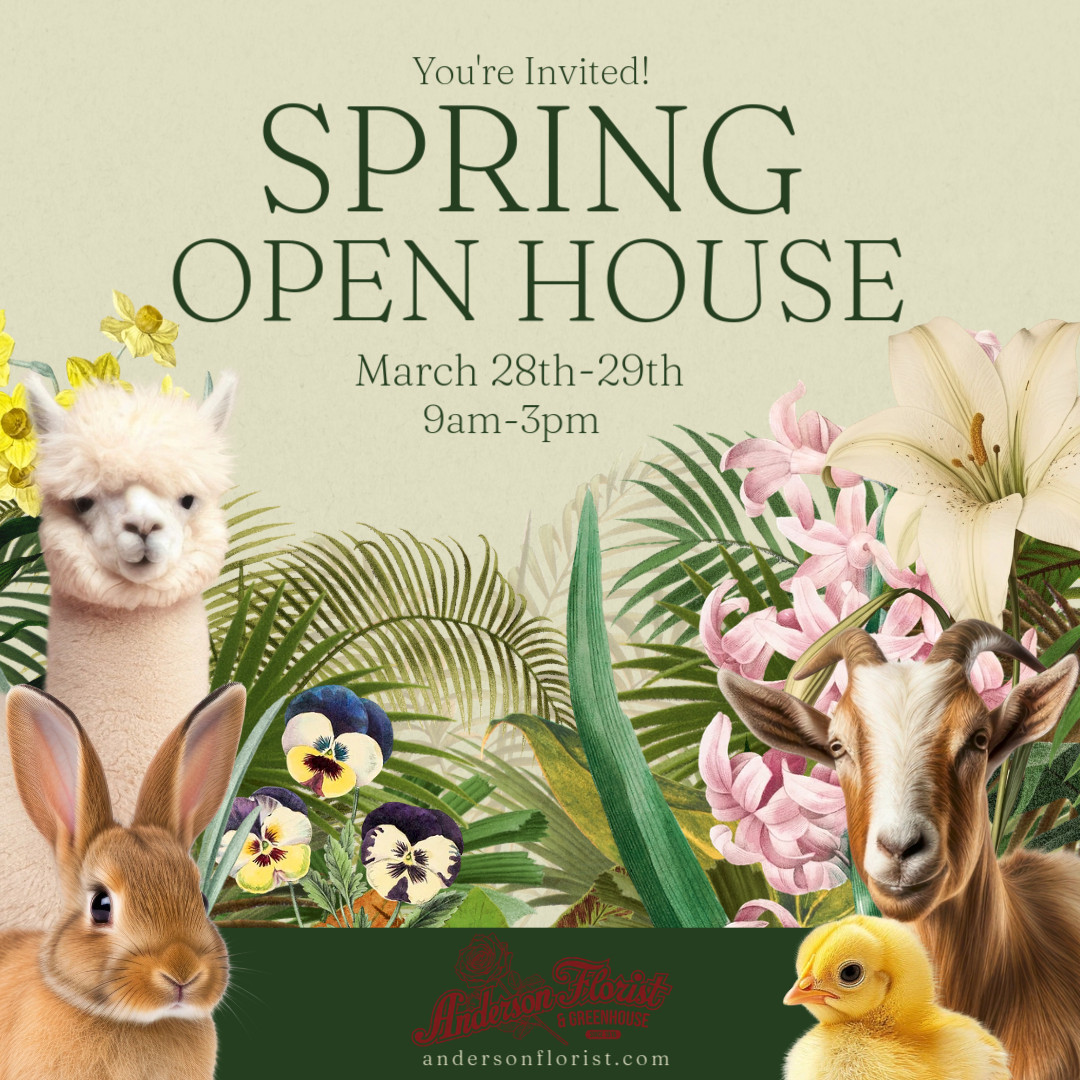 Join us at Anderson Florist and Greenhouse for our annual Open House Celebration! This is an event that has been a tradition over Palm Sunday weekend for years and we mean to keep it that way. Wander the greenhouses while enjoying refreshments, a petting zoo and mini farmer's market! It's also your chance to take […]