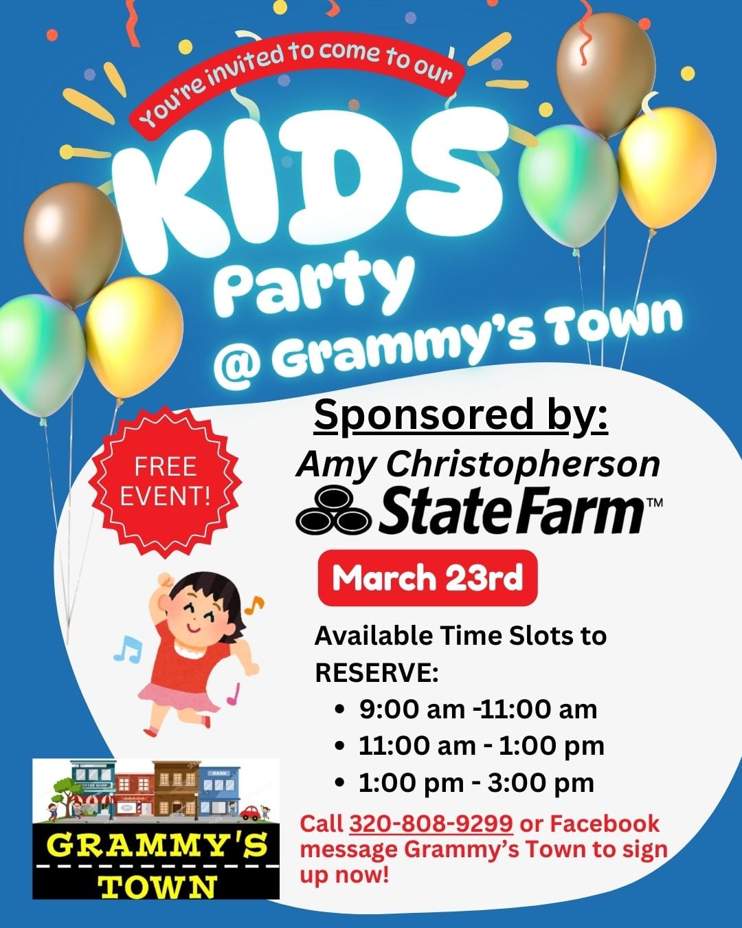 Exciting News, Families! 🎉 Calling all parents, grandparents, and caregivers — bring your kids out to play! Amy Christopherson State Farm is proudly sponsoring a FREE Kids’ Party at Grammy’s Town on Monday, March 23rd (school’s out that day)! 📞 Call 320-808-9299 or send a Facebook message to Grammy’s Town to reserve your spot today! […] |