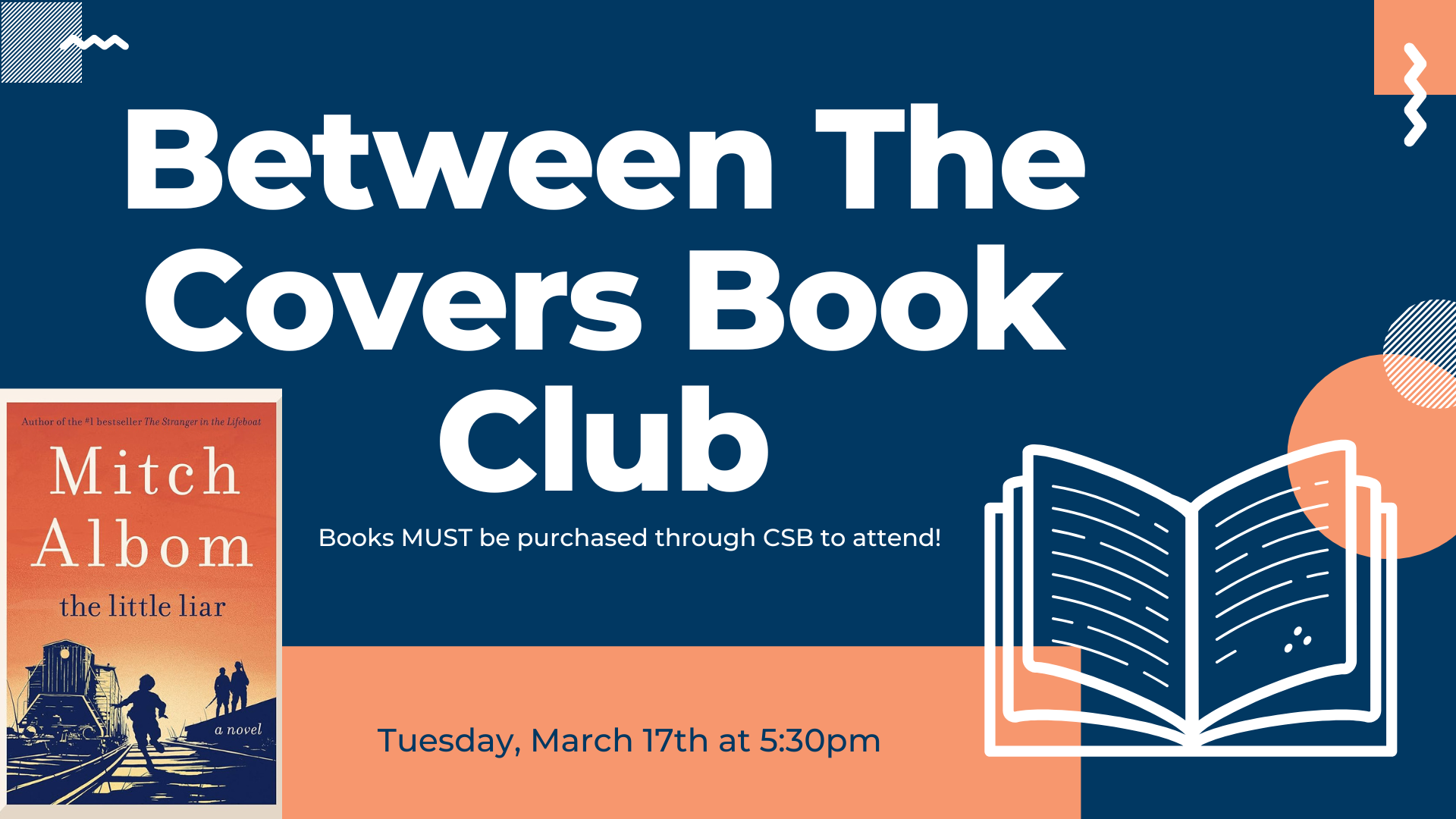 Between the Covers Book Club ~ The Little Liar by Mitch Albom 📅 Tuesday, March 17th • 5:30PM-6:30PM 📍 In-store at Cherry Street Books Step into a story of truth, survival, and the cost of lies with our Between the Covers Book Club 📖 This month, we’re reading The Little Liar by Mitch Albom. Set […] |
